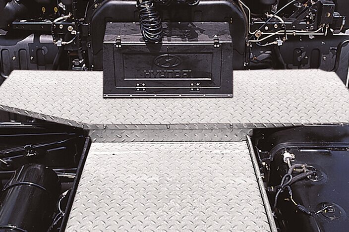 Sàn cỡ lớn, có các bước để lên xuống dễ dàng, tay điều khiển hai bên dễ dàng cho việc kết nối và ngắt kết nối nhanh. Nó cũng bao gồm các hộp công cụ cỡ lớn để bảo vệ cho bình nhiên liệu, ắc quy và bình khí.