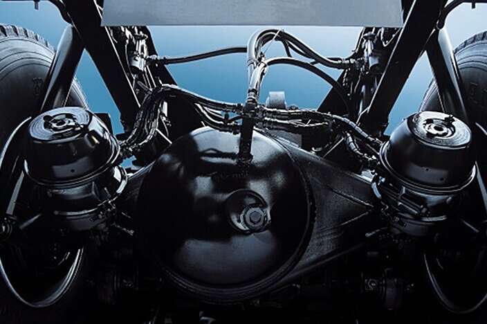 Cầu trước có tải trọng cao đảm bảo điều kiện tốt nhất để lái xe ổn định và tăng độ bền.